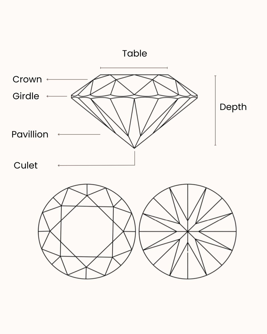 • Culet – the bottom tip; modern excellent cuts render it nearly invisible