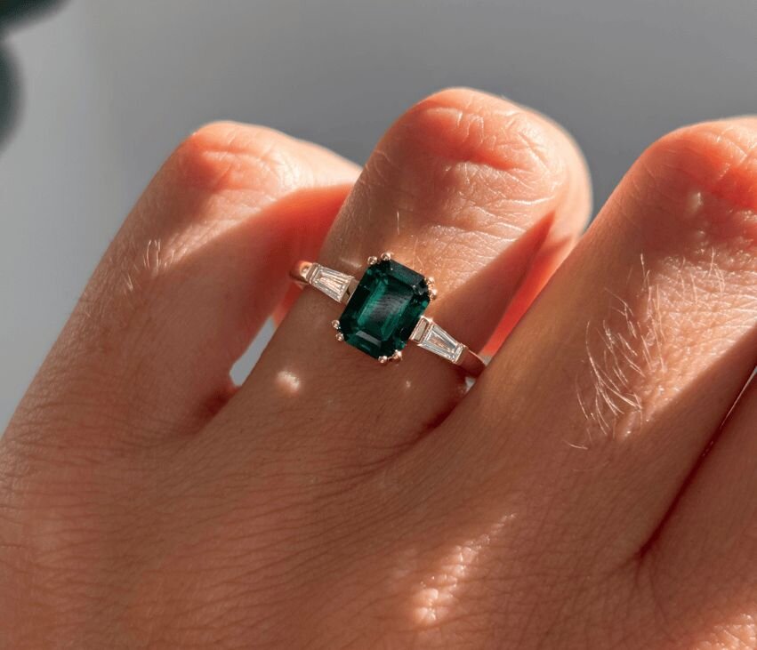 Emeralds pair well with yellow, white, and rose gold, as well as platinum.