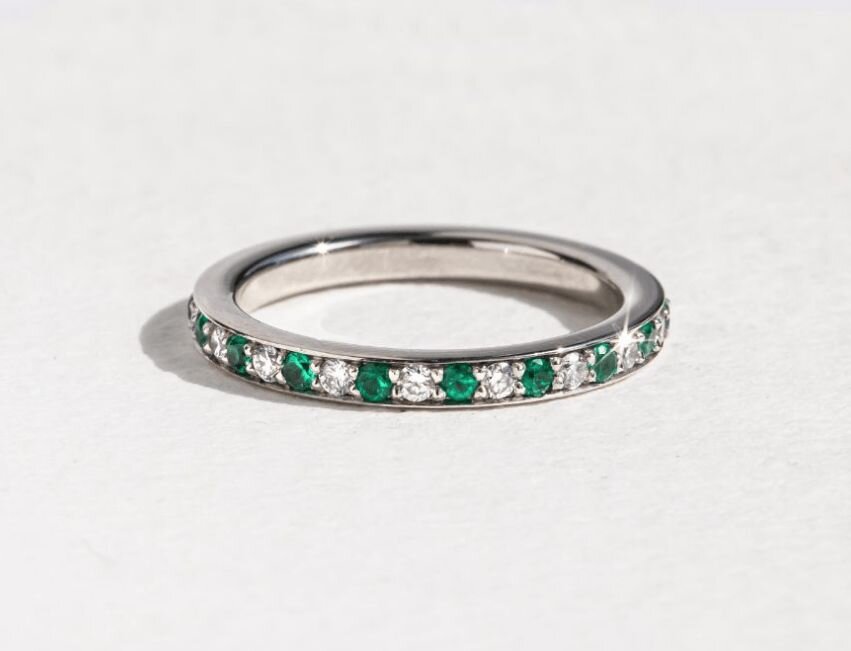 ➤ Durability: On the Mohs Scale, they are rated between 7.5 to 8. Thus, emerald gem quality is softer than other commonly used gemstones in wedding bands and just needs to be respected.