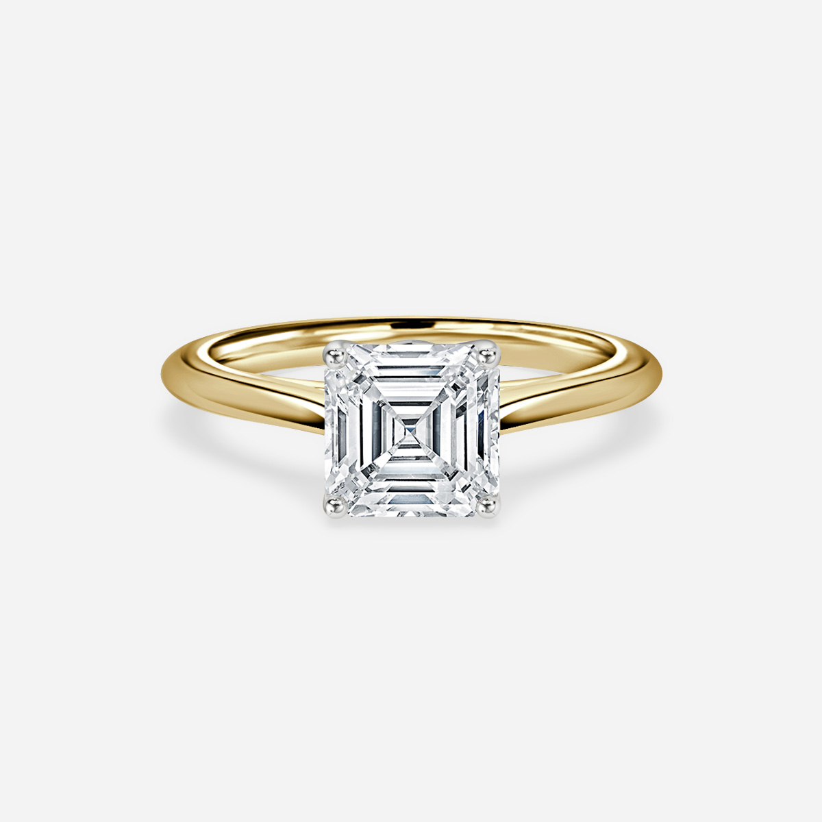 Elegantly crafted, our yellow gold two-tone petal solitaire engagement ring features a delicate petal-inspired setting that accentuates a brilliant solitaire, symbolizing the blossoming of your eternal love story. Handcrafted in Hatton Gardens, London. Centre Diamond Not Included Setting only.
