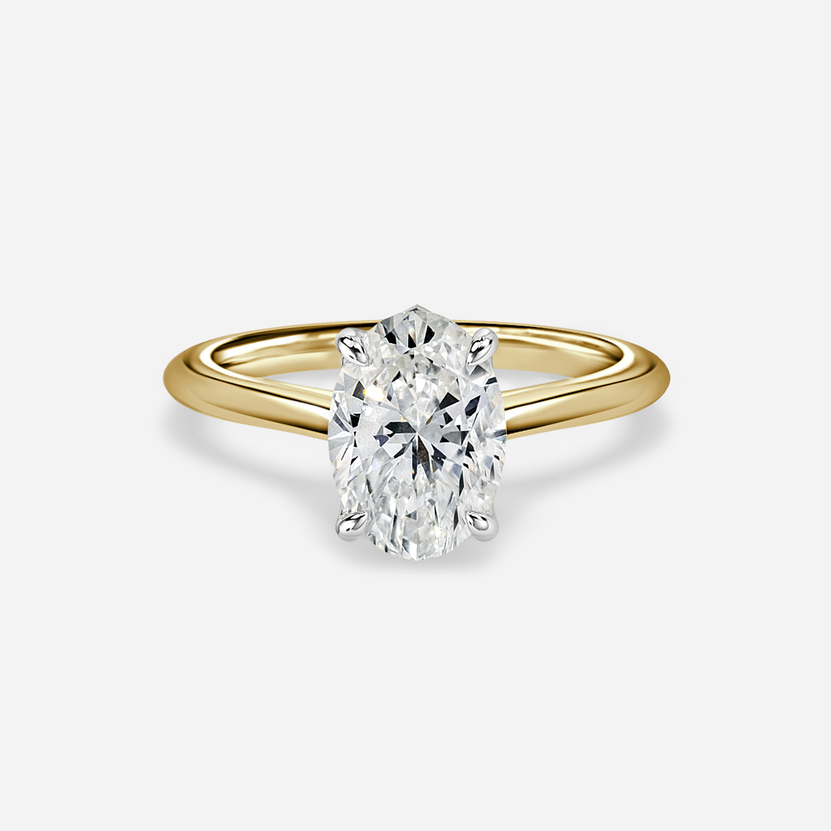 Elegantly crafted, our yellow gold two-tone petal solitaire engagement ring features a delicate petal-inspired setting that accentuates a brilliant solitaire, symbolizing the blossoming of your eternal love story. Handcrafted in Hatton Gardens, London. Centre Diamond Not Included Setting only.