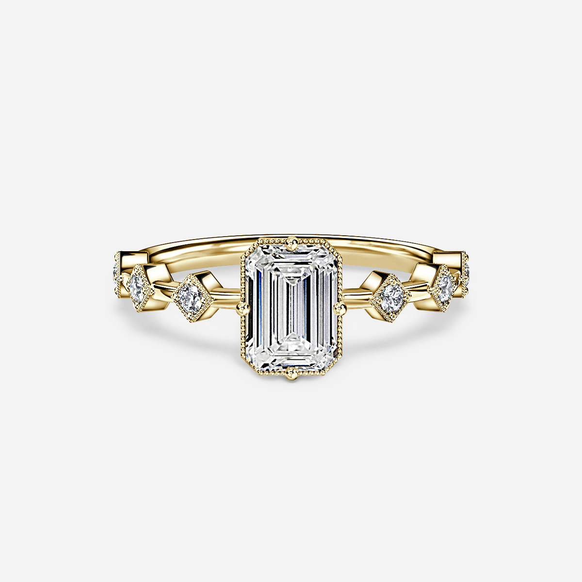 The Agra Unique Vintage Grain Set Yellow Gold Engagement Ring exudes timeless elegance with its exquisite design, featuring a brilliant round diamond set on a delicately crafted yellow gold band. This heirloom-quality piece seamlessly blends vintage charm with modern sophistication, symbolizing enduring love and commitment. Handcrafted in Hatton Garden, London Centre Diamond Not Included Setting Only