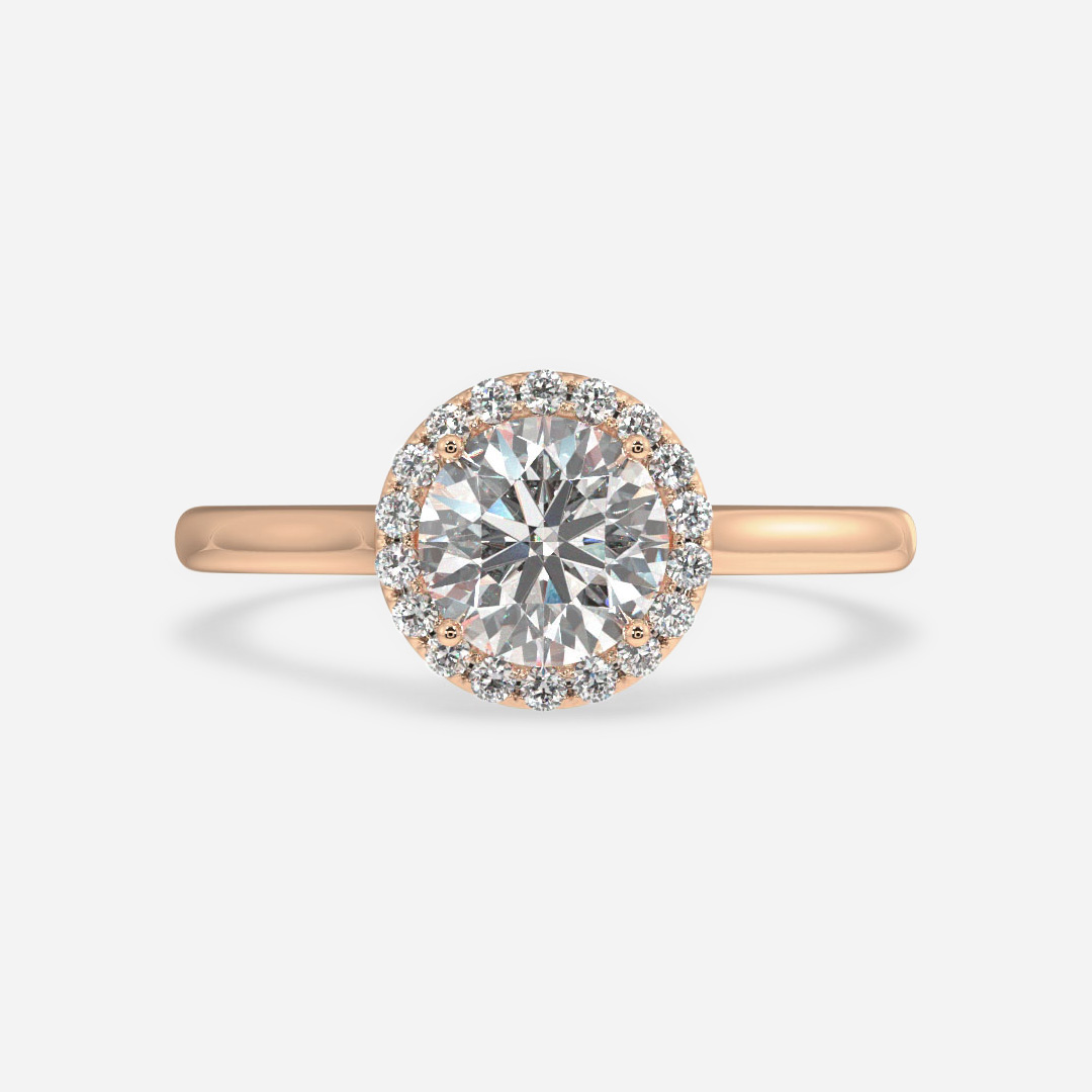 A captivating halo of pavé-set diamonds surrounds the center gem of this timelessly elegant ring. Crafted in timeless rose gold showcase a center diamond. Handcrafted in Hatton Garden, London Centre Diamond Not Included Setting Only