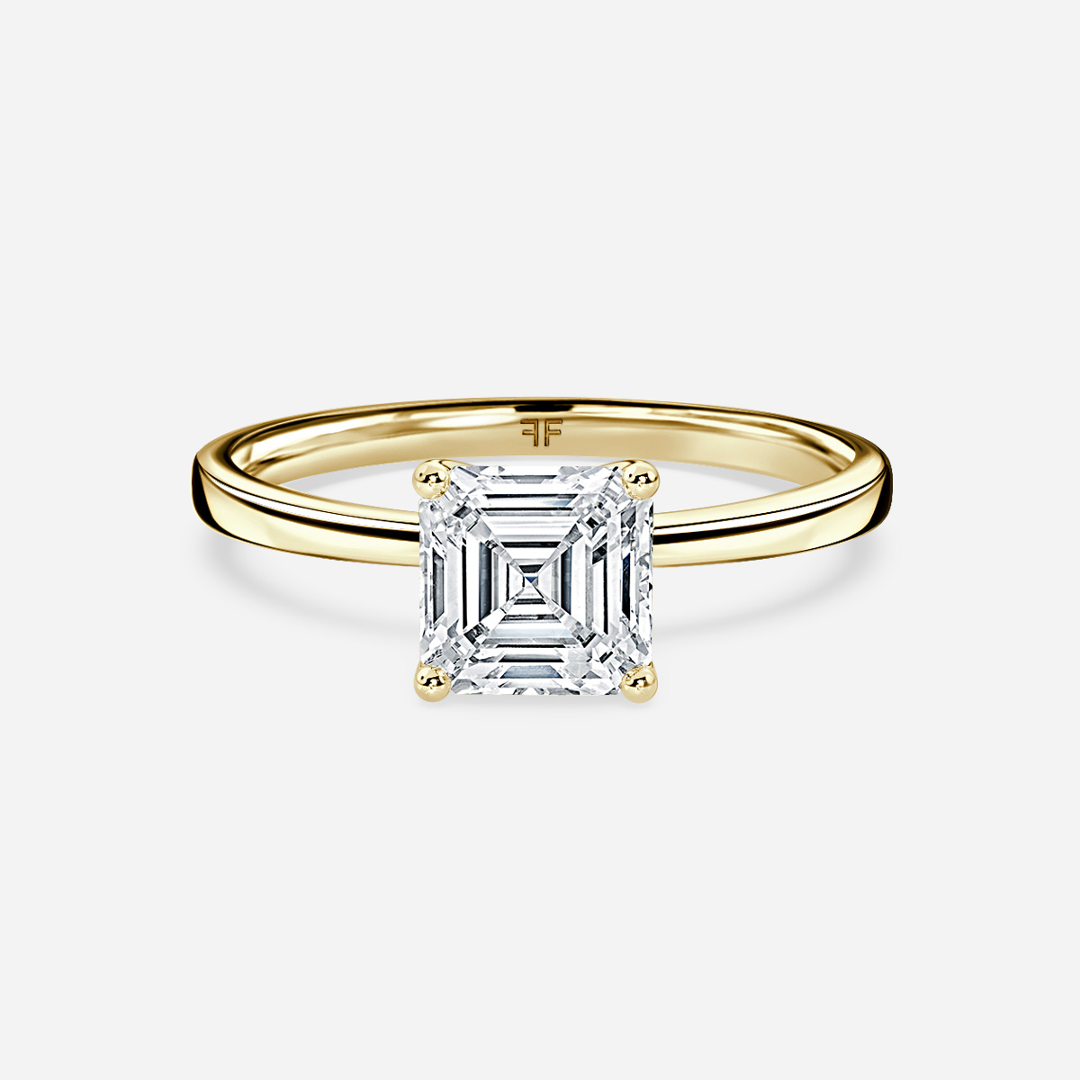The yellow gold lotus tapered solitaire engagement ring is a classic and elegant design that features a delicate lotus flower-inspired prong setting with a single center diamond. The ring's tapered band gracefully narrows as it approaches the diamond, creating a timeless and sophisticated look. Handcrafted in Hatton Garden, London Centre Diamond Not Included Setting Only