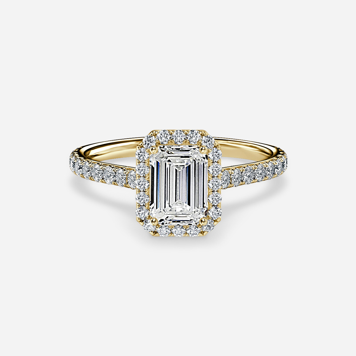 A yellow gold pave set diamond halo engagement ring featuring timeless brilliance with a gleam of sparkle, perfect for your special someone. Handcrafted by our master jewellers in Hatton Gardens, London. Centre Diamond Not Included