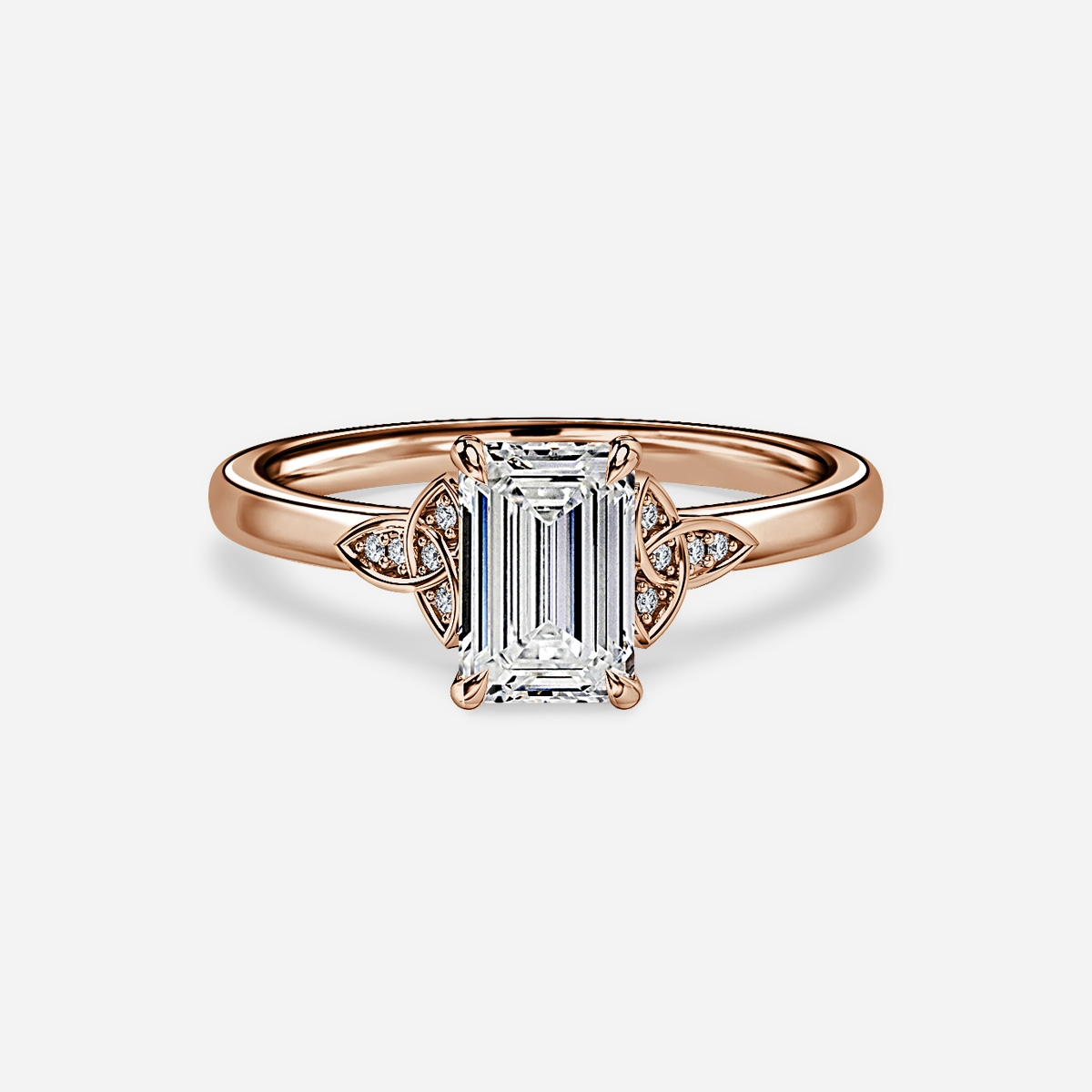 BROWSE READY TO SHIP RINGSA rose gold engagement ring with diamond in the loops is a modern twist on a timeless classic. The beautiful curves on the metal loop gracefully, to form a knot on either side of the center diamond. Handcrafted in Hatton Gardens, London. Centre Diamond Not Included Setting Only