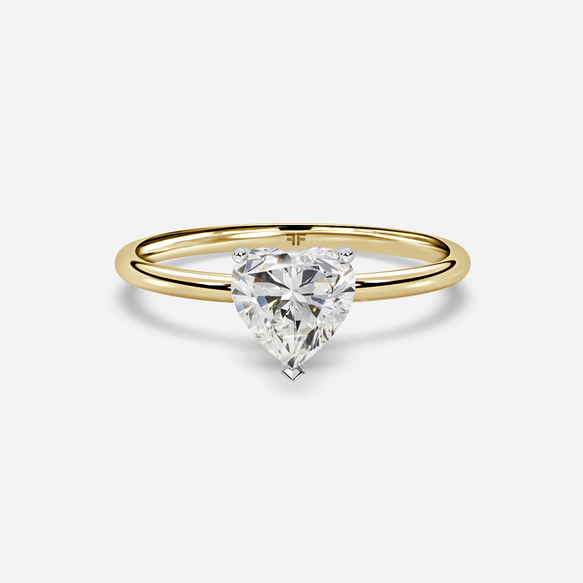 A classic yellow gold two tone solitaire engagement ring supported by four prongs and delicate plain band. Handcrafted in Hatton Garden, London Centre Diamond Not Included Setting Only