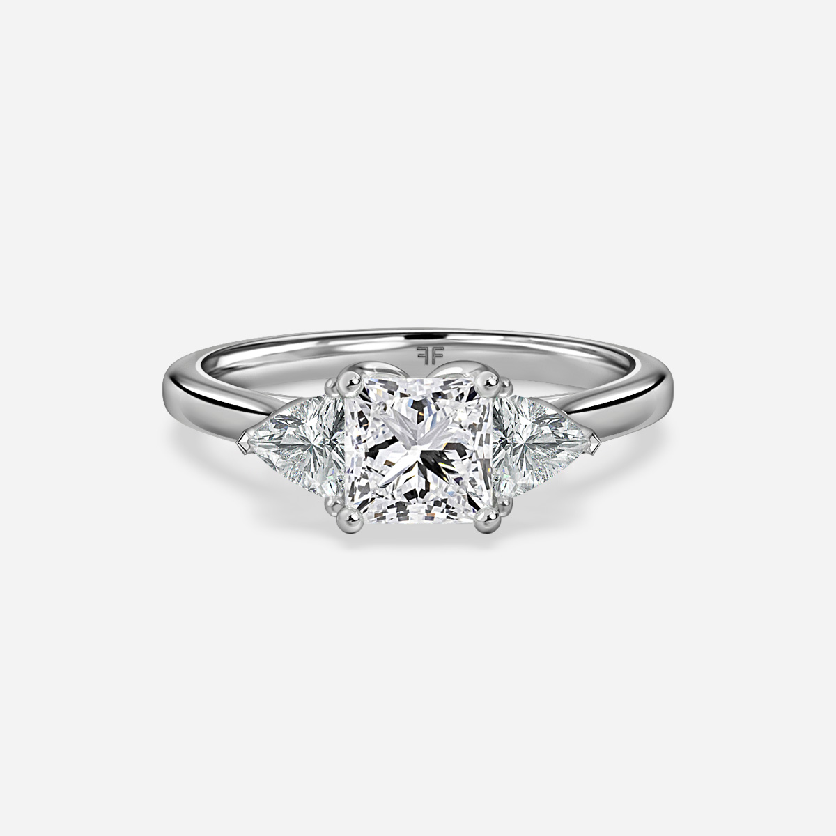 The trillion cut diamond trilogy ring is a luxurious and timeless piece of jewelry. The three diamonds in a straight row setting showcase the brilliance of the stones and the enduring elegance of platinum. Handcrafted in Hatton Garden, London Center Diamond Not Included Setting Only