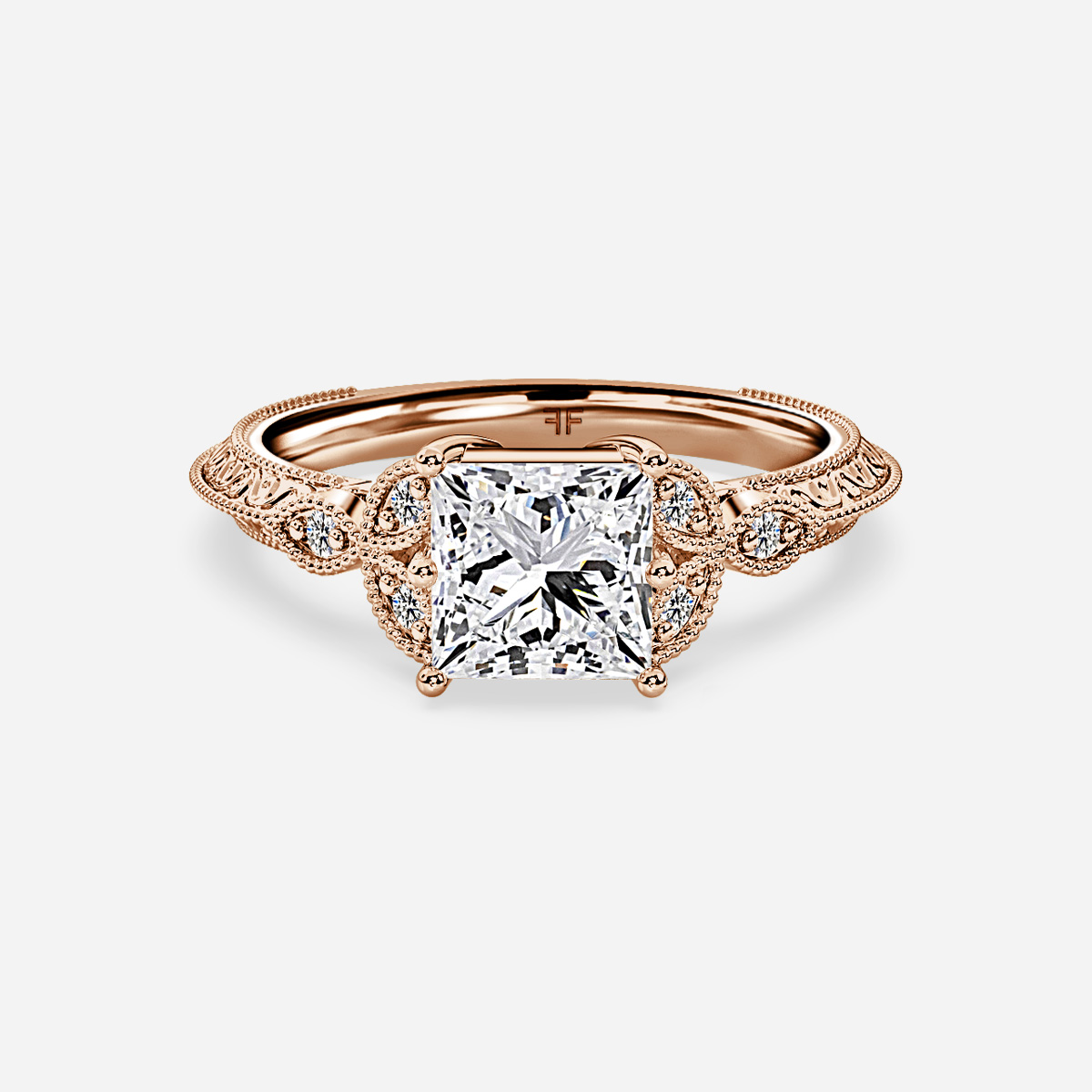 The rose gold grain set vintage engagement ring is a beautifully crafted piece of jewelry that blends traditional and modern design elements. Featuring a Celtic knot pattern and sparkling diamonds set in a grain setting, this ring is a stunning symbol of love and commitment. Handcrafted in Hatton Garden, London Centre Diamond Not Included Setting Only