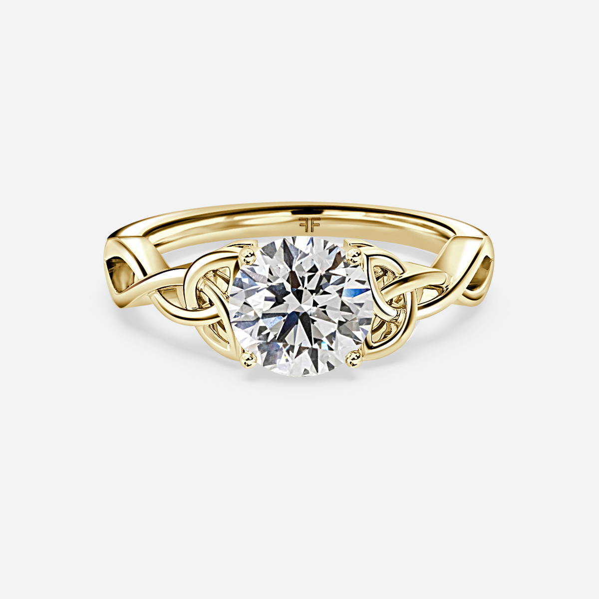 BROWSE READY TO SHIP RINGSA stunning yellow gold engagement ring with intricate Celtic knotwork designs on the band and a center diamond or gemstone. Handcrafted in Hatton Garden, London Centre Diamond Not Included Setting Only