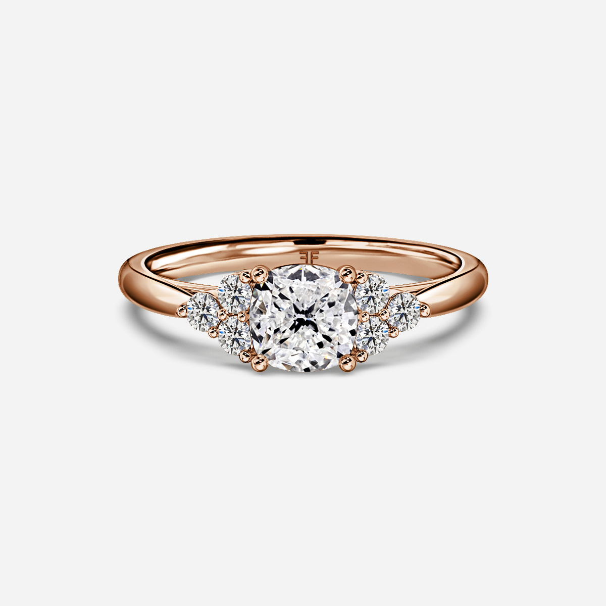 Brilliant and Elegant this rose gold trilogy engagement ring featuring three sparkling diamonds set around a center stone, creating a stunning ring with a unique and luxurious look. Handcrafted in Hatton Gardens, London. Centre Diamond Not Included Setting Only