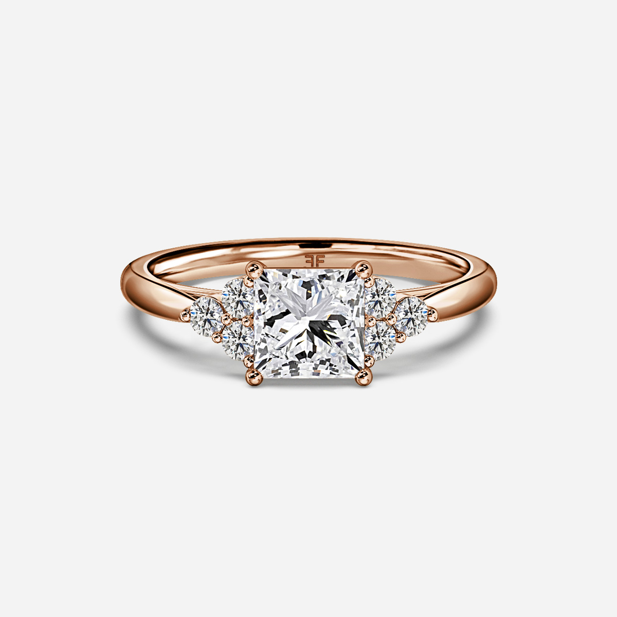 Brilliant and Elegant this rose gold trilogy engagement ring featuring three sparkling diamonds set around a center stone, creating a stunning ring with a unique and luxurious look. Handcrafted in Hatton Gardens, London. Centre Diamond Not Included Setting Only