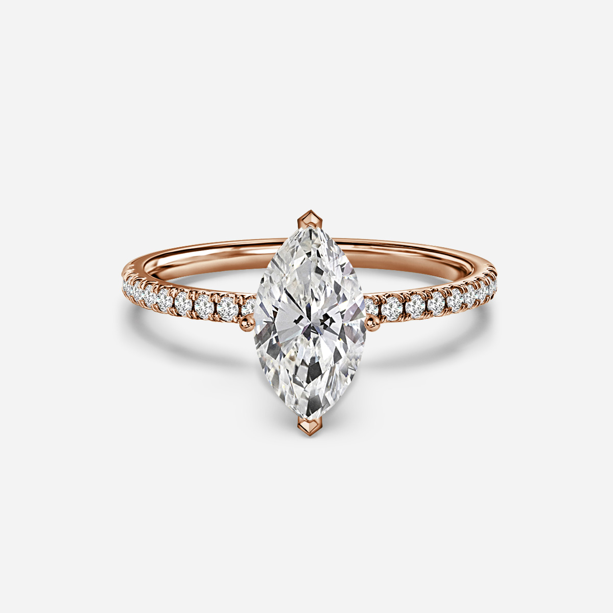 A classic Jessica engagement ring crafted in timeless rose gold showcase a center diamond. Supported by four prongs and pavé-set diamonds. Handcrafted in Hatton Garden, London Centre Diamond Not Included Setting Only