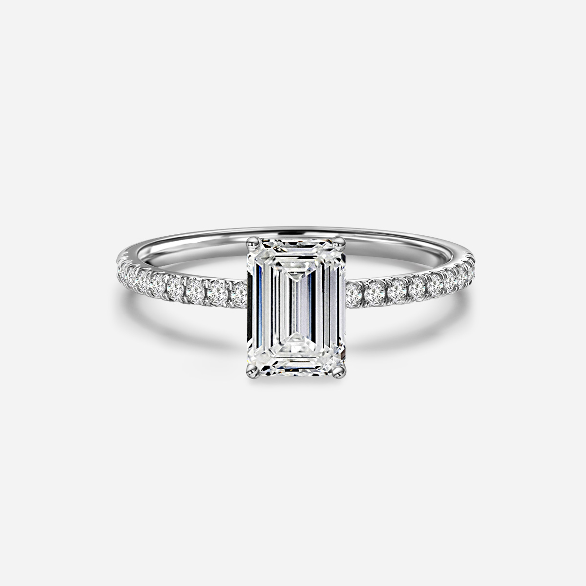 A classic Jessica engagement ring crafted in elegant white gold showcase a center diamond. Supported by four prongs and pavé-set diamonds. Handcrafted in Hatton Garden, London Centre Diamond Not Included Setting Only