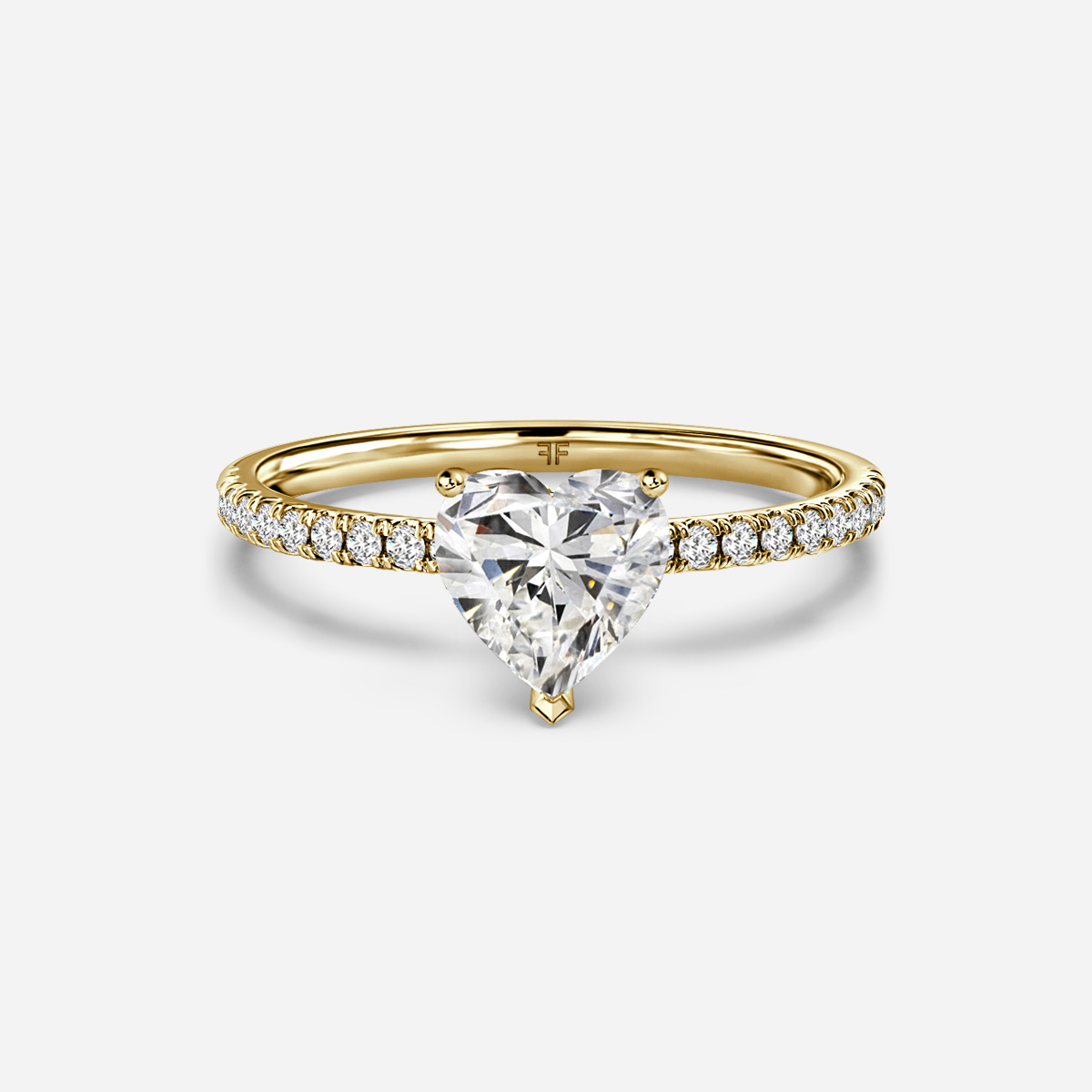 A classic Jessica engagement ring crafted in traditional yellow gold, showcase a center diamond. Supported by four prongs and pavé-set diamonds. Handcrafted in Hatton Garden, London Centre Diamond Not Included Setting Only