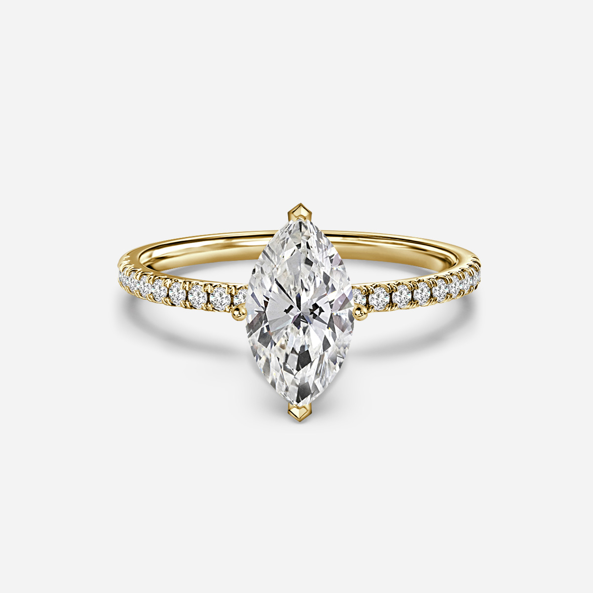 A classic Jessica engagement ring crafted in traditional yellow gold,  showcase a center diamond. Supported by four prongs and pavé-set diamonds. Handcrafted in Hatton Garden, London Centre Diamond Not Included Setting Only