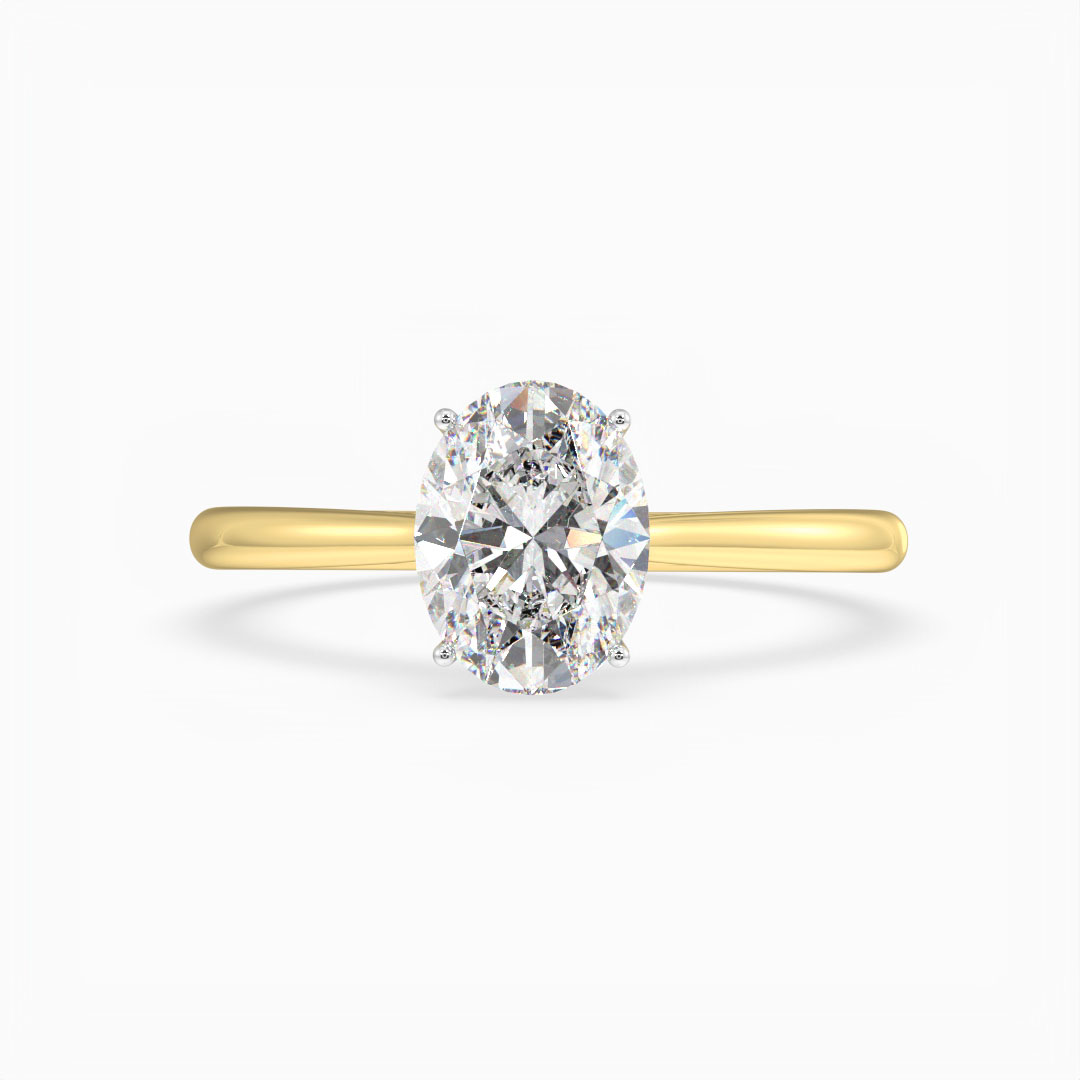 The modern tulip two tone yellow gold engagement ring combines timeless elegance with contemporary flair. Its sleek design features a stunning tulip-shaped setting that securely holds a brilliant diamond. Handcrafted in Hatton Garden, London Centre Diamond Not Included Setting Only