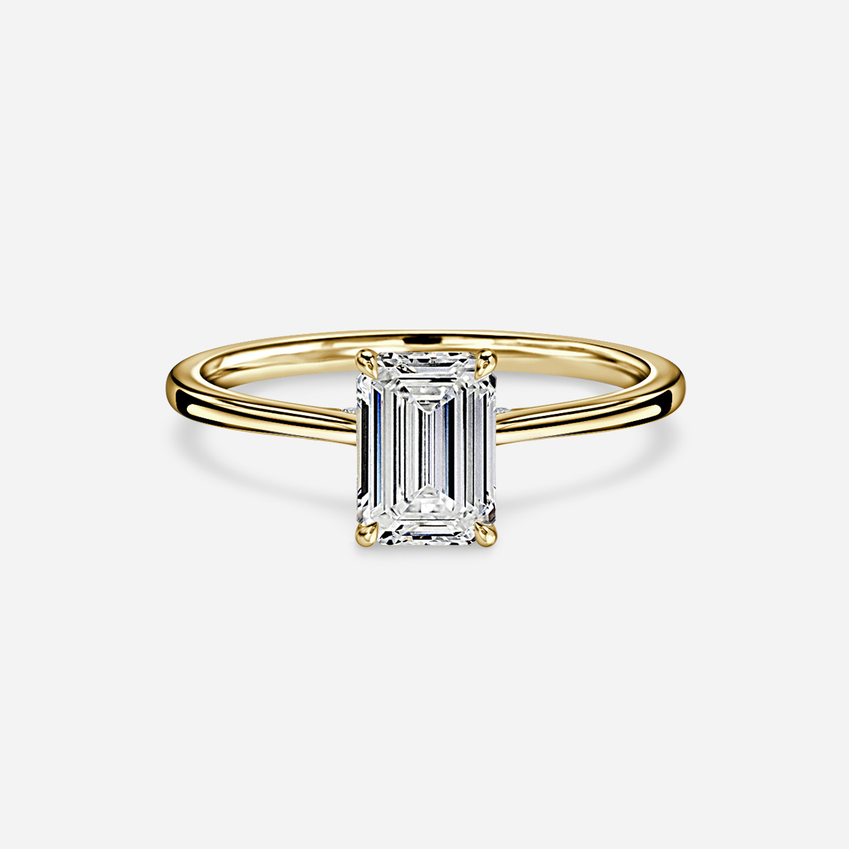 The Juliette Yellow Gold Engagement Ring embodies understated sophistication, showcasing a meticulously crafted hidden halo design with a set bridge. This exquisite ring presents a stunning array of diamonds, epitomizing timeless elegance and refined beauty.
