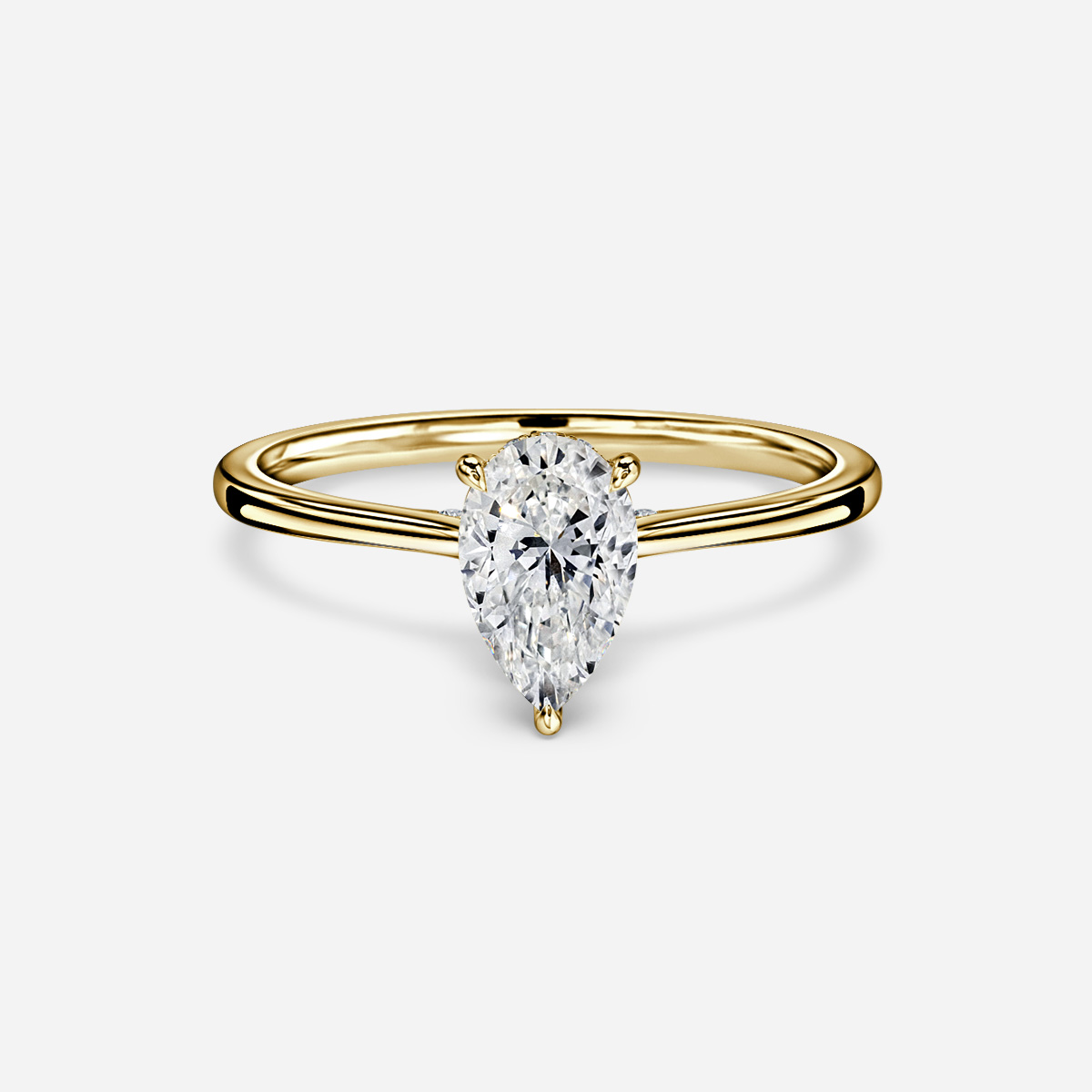 The Juliette Yellow Gold Engagement Ring embodies understated sophistication, showcasing a meticulously crafted hidden halo design with a set bridge. This exquisite ring presents a stunning array of diamonds, epitomizing timeless elegance and refined beauty.