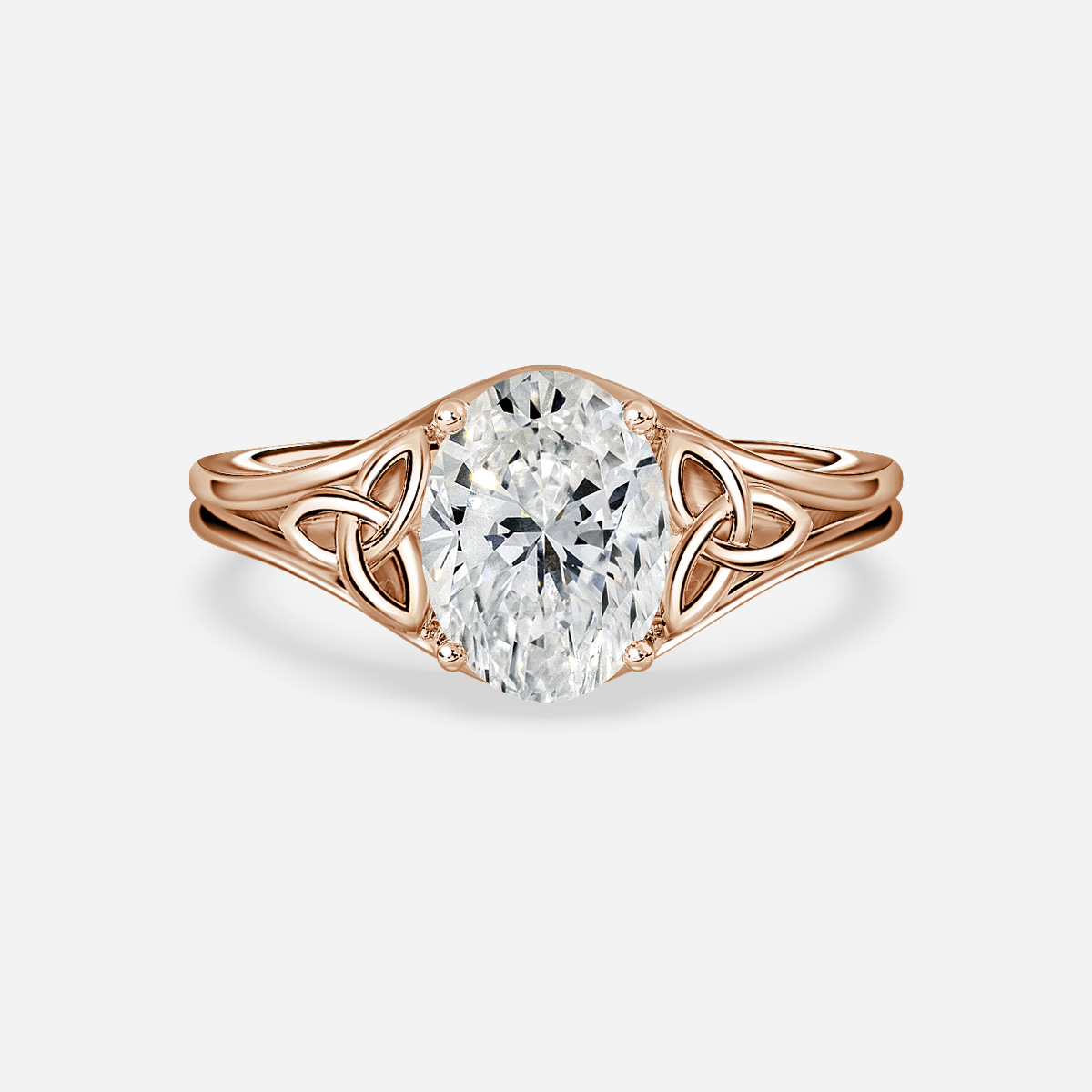 A split band Celtic engagement ring features an intricately designed band with Celtic knotwork, symbolizing eternal love and unity. The band splits elegantly, embracing a dazzling gemstone at its center, combining timeless tradition with contemporary style. Handcrafted in Hatton Garden, London Centre Diamond Not Included Setting Only