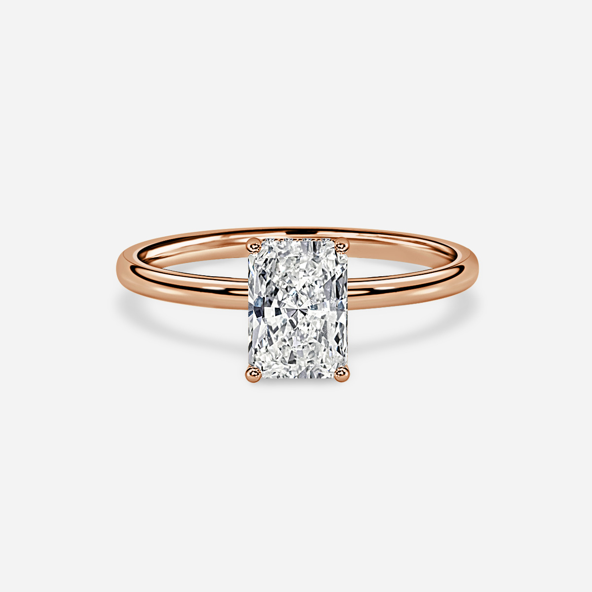 The Kate Rose Gold Engagement Ring features a delicate hidden halo of diamonds that encircle the center gemstone. A slender band adds a touch of chic simplicity, perfectly complementing the gallery. A ring design that is perfect for those who love understated diamond details and sophisticated minimal styles. This piece is crafted by hand with recycled 18k Rose Gold in our London, Hatton Garden workshop. It is made to order and can take 6 - 8 weeks to complete. The price is for the setting only, the centre diamond is chosen separately.
