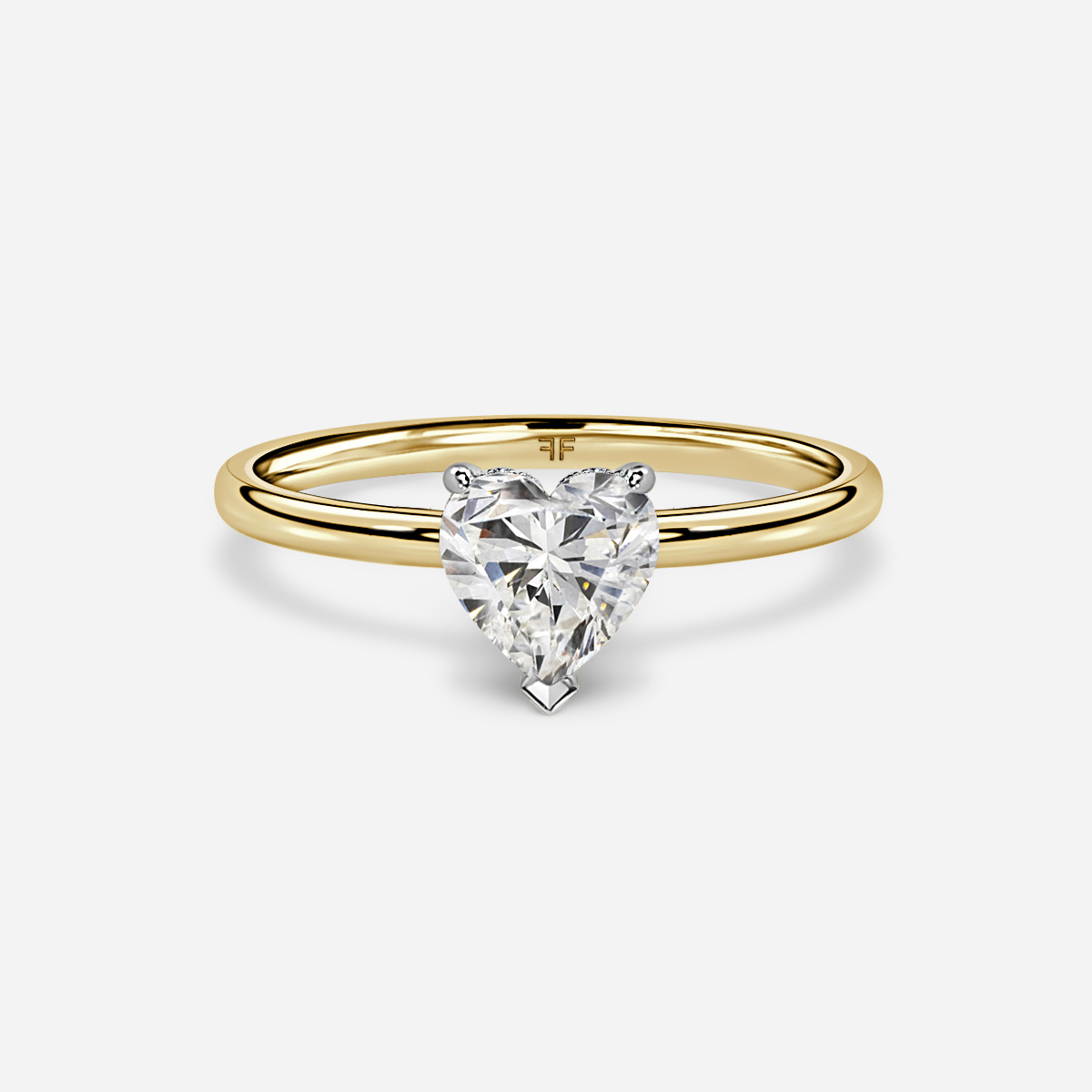 The Kate Two Tone Yellow Gold Engagement Ring boasts a delicate hidden halo of diamonds that encircle the center gemstone. A slender band adds a touch of chic simplicity, perfectly complementing the gallery. A ring that is perfect for those who love understated diamond details and sophisticated solitaire styles. Crafted by hand with recycled Yellow and White 18k Gold in our London, Hatton Garden workshop. The price is for the setting only, the centre diamond is chosen separately.