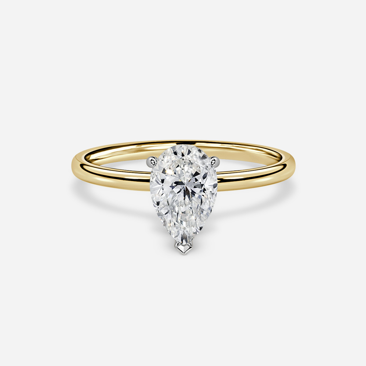 The Kate Two Tone Yellow Gold Engagement Ring boasts a delicate hidden halo of diamonds that encircle the center gemstone. A slender band adds a touch of chic simplicity, perfectly complementing the gallery. A ring that is perfect for those who love understated diamond details and sophisticated solitaire styles. Crafted by hand with recycled Yellow and White 18k Gold in our London, Hatton Garden workshop. The price is for the setting only, the centre diamond is chosen separately.