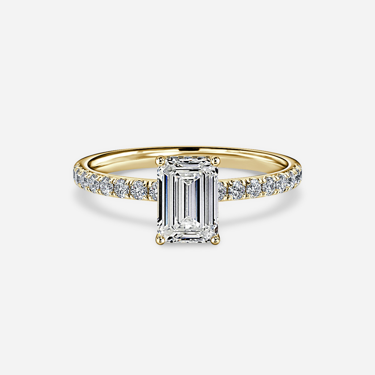 The Kate Yellow Gold Pave Band Hidden Halo Engagement Ring features a dazzling yellow gold band adorned with delicate pavé-set diamonds, highlighting its timeless elegance. A hidden halo encircles the center stone, adding a subtle yet stunning sparkle from every angle. Handcrafted in Hatton Garden, London. Center Diamond Not Included Setting Only.