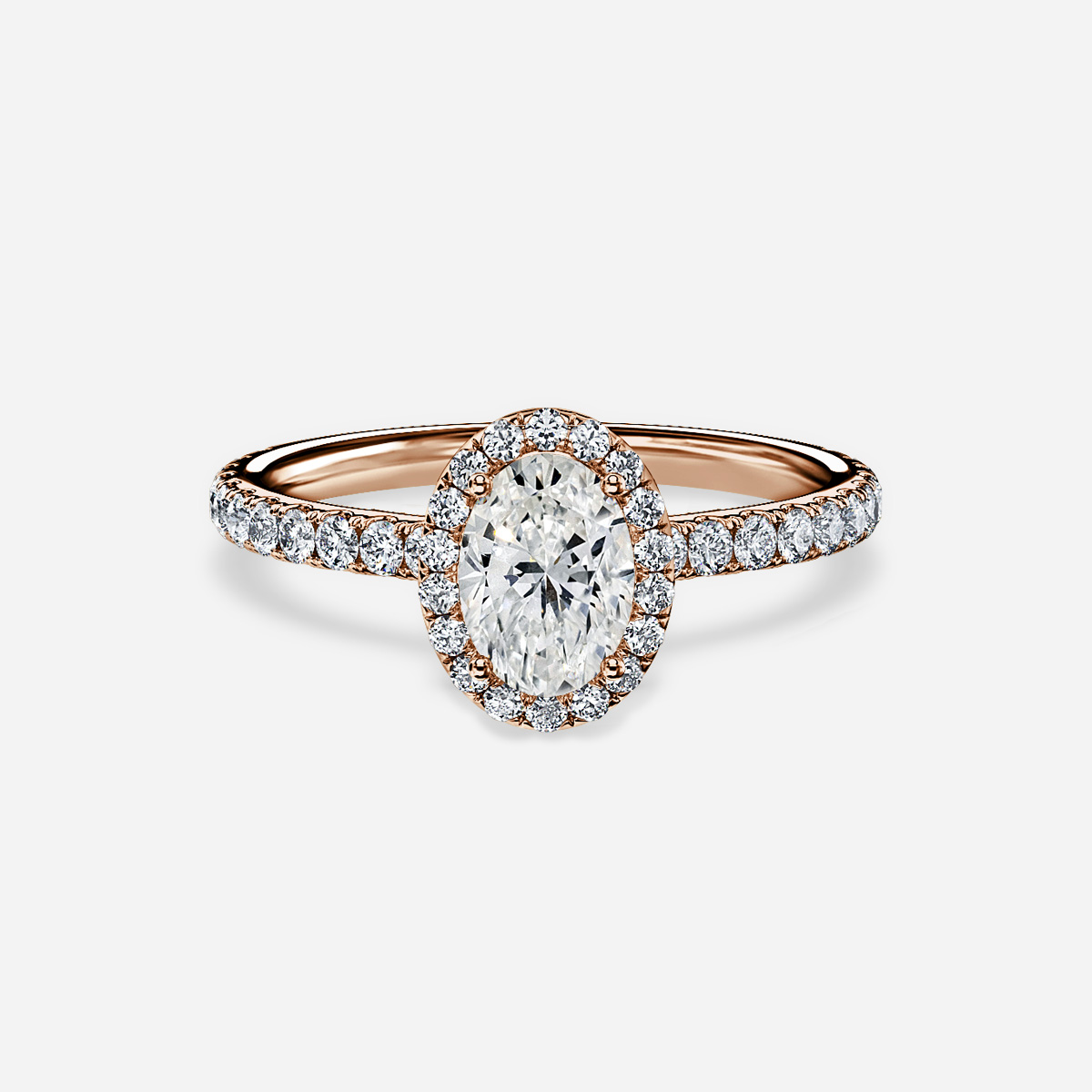 A rose gold halo engagement ring is a timeless classic designed with a center stone surrounded by a ring of smaller accent stones, usually pave diamonds. It is a beautiful addition to any proposal or celebration. Handcrafted in Hatton Gardens, London. Centre Diamond Not Included Setting only