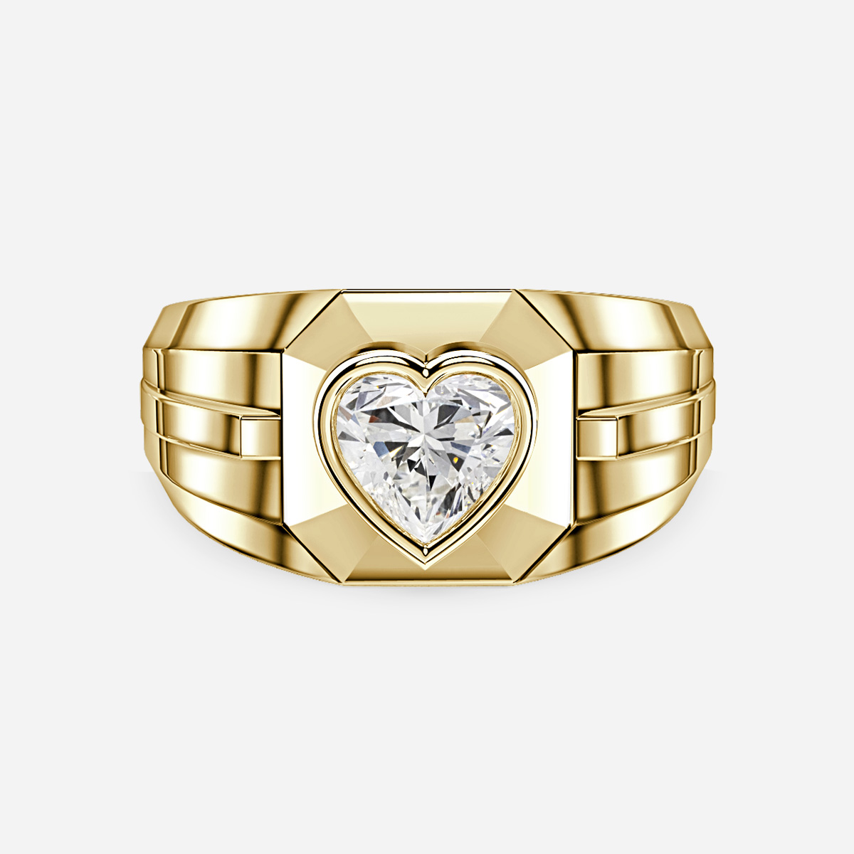 A yellow gold men's bezel set engagement ring features a center stone held in place by a metal rim that surrounds the stone, providing a sleek and modern look. This type of ring is a popular choice for men who prefer a minimalist design and want to showcase a single, stunning diamond or gemstone. Handcrafted in Hatton Garden, London Centre Diamond Not Included Setting Only