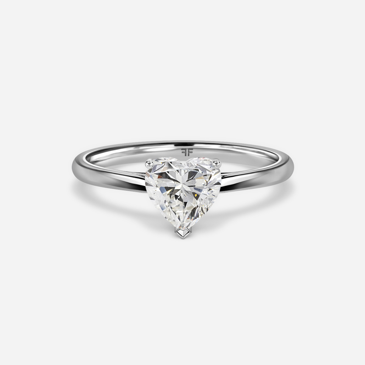 The solitaire tapered band engagement ring is a stunning symbol of love and commitment. Crafted from white gold and adorned with a center diamond, it is sure to capture the heart of your beloved. Handcrafted in Hatton Gardens, London. Setting only