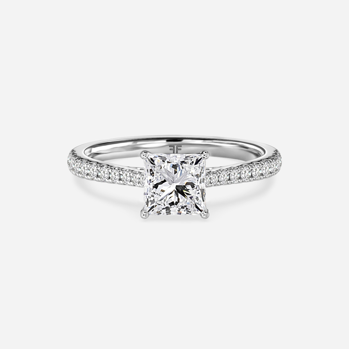 BROWSE READY TO SHIP RINGSA platinum micro pave diamond engagement ring features a sparkling round diamond in the center, accents along the shoulders, and a timeless design perfect for celebrating this special moment. Handcrafted in Hatton Garden, London Centre Diamond Not Included Setting Only