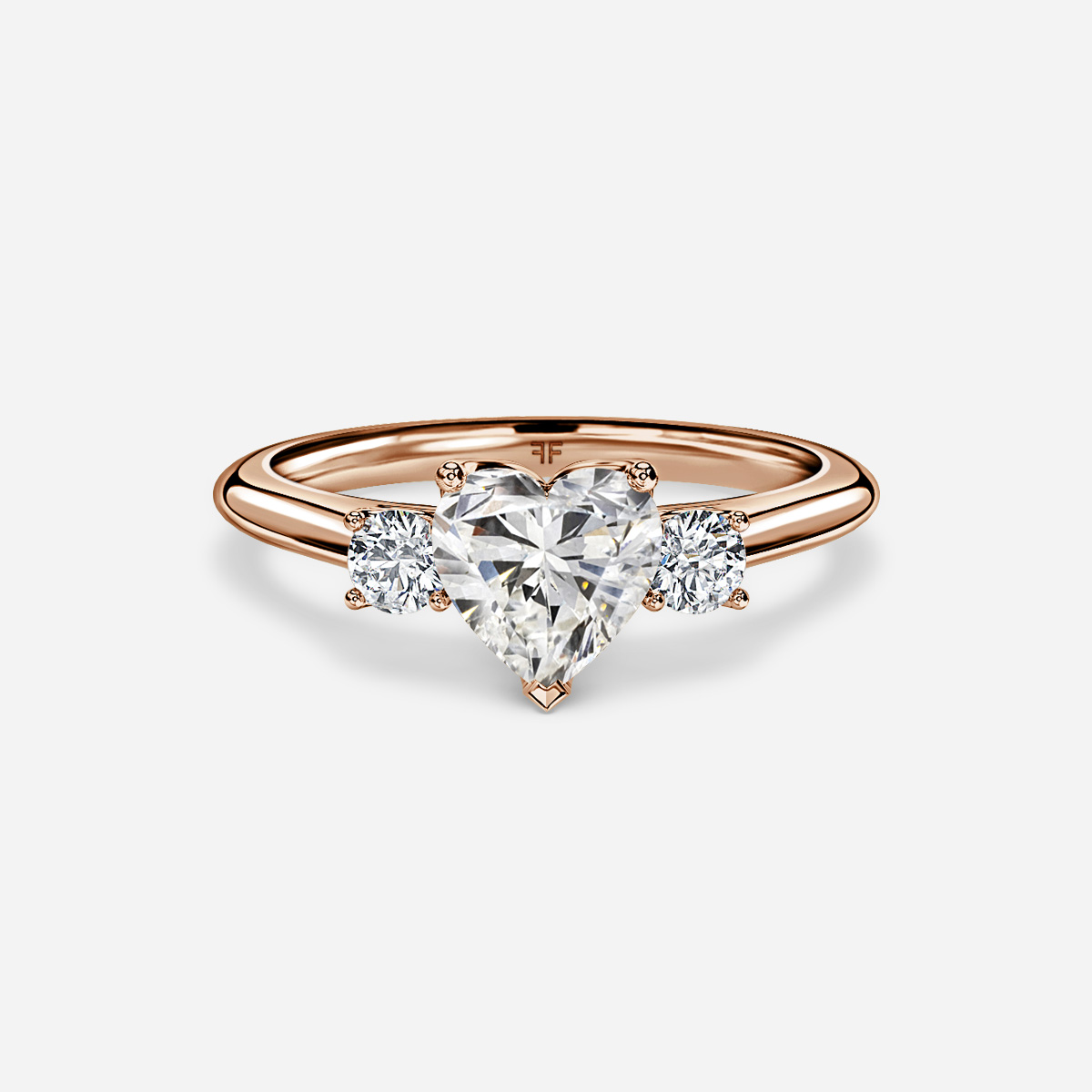 This rose gold rohini trilogy engagement ring features petal claws sweeping upward to embrace two brilliant round diamond side stone that symbolize the past, present, and future tale of your relationship. Handcrafted in Hatton Garden, London Centre Diamond Not Included Setting Only