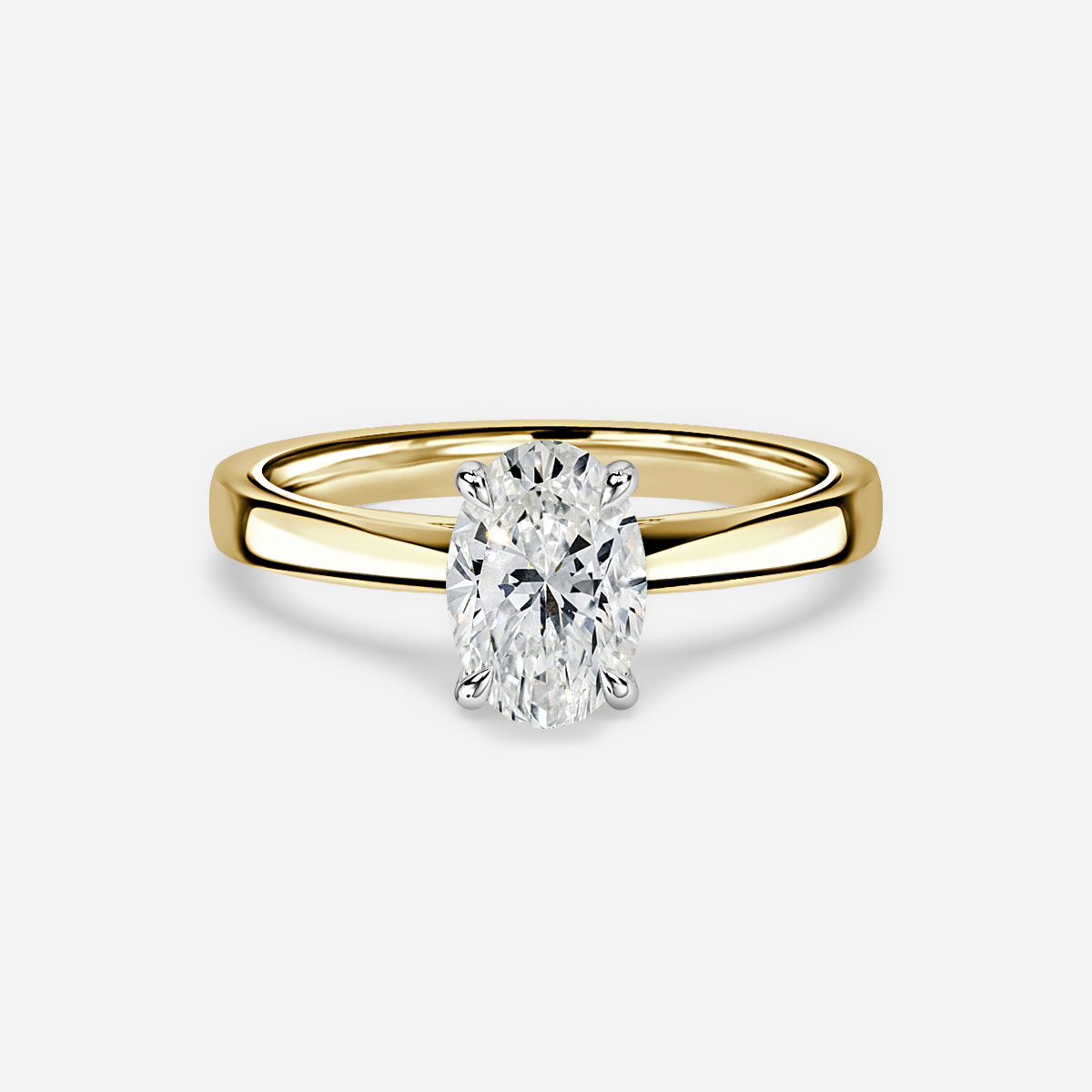 Classic and refined, this exquisite tulip yellow gold two tone solitaire engagement ring features a shape of your choice diamond that sits within a four prong basket setting. Handcrafted in Hatton Gardens, London. Centre Diamond Not Included Setting Only