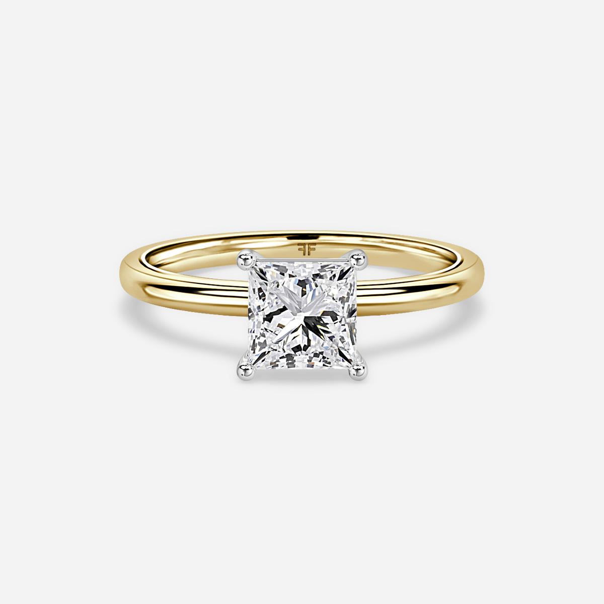This yellow gold two-tone solitaire engagement ring exudes timeless elegance and sophistication. The contrasting band adds a modern twist to the classic design, making it the perfect symbol of commitment and love. Handcrafted in Hatton Gardens, London. Centre Diamond Not Included Setting only
