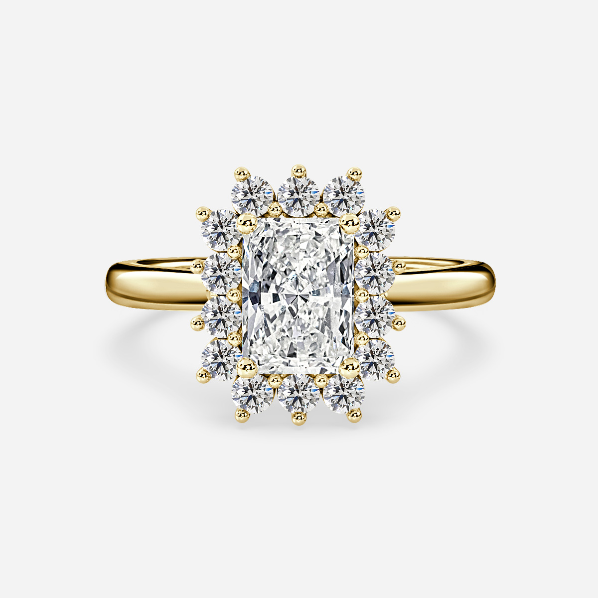 A yellow gold cluster diamond engagement ring is a stunning and unique piece of jewelry featuring a cluster of intricate stones set in a stylish design. It is perfect for expressing your everlasting love and commitment. Handcrafted in Hatton Gardens, London. Centre Diamond Not Included Setting Only