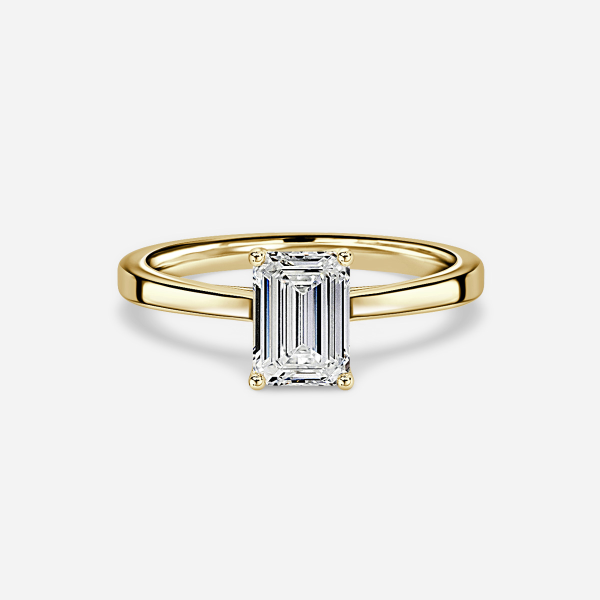 BROWSE READY TO SHIP RINGSA yellow gold tapered solitaire engagement ring is a timeless classic and a perfect way to express your love. Its sparkling diamond and delicate band will bring an air of elegance to any occasion. Handcrafted in Hatton Garden, London Centre Diamond Not Included Setting Only