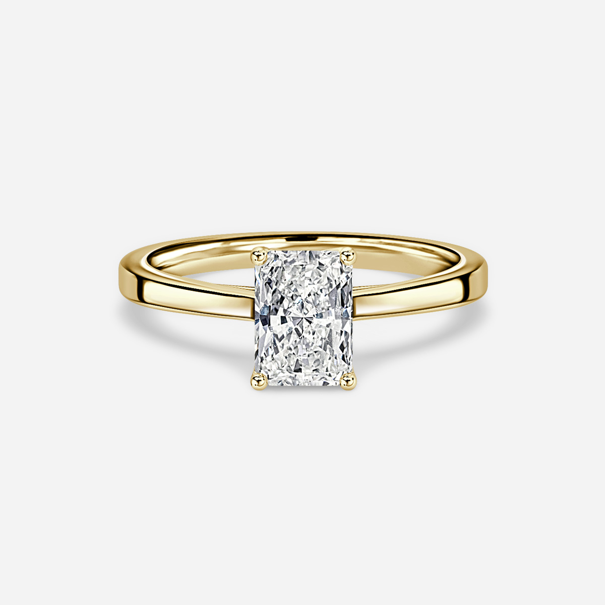 BROWSE READY TO SHIP RINGSA yellow gold tapered solitaire engagement ring is a timeless classic and a perfect way to express your love. Its sparkling diamond and delicate band will bring an air of elegance to any occasion. Handcrafted in Hatton Garden, London Centre Diamond Not Included Setting Only